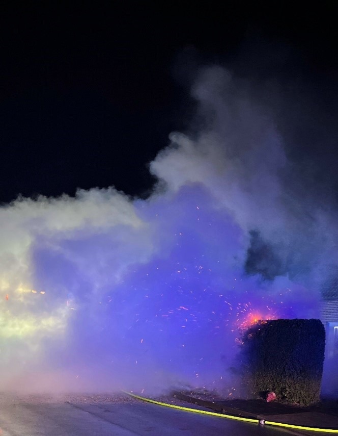 Den bisherigen Erkenntnissen nach war an einem Grundstück an der Ringstraße gegen 02:30 Uhr aus ungeklärter Ursache eine Hecke in Brand geraten. Dies bemerkte eine Anwohnerin (55) und informierte daraufhin den 43-jährigen Bewohner des Hauses. Der zwischenzeitlich alarmierten Feuerwehr gelang es schließlich, die brennende Hecke abzulöschen.