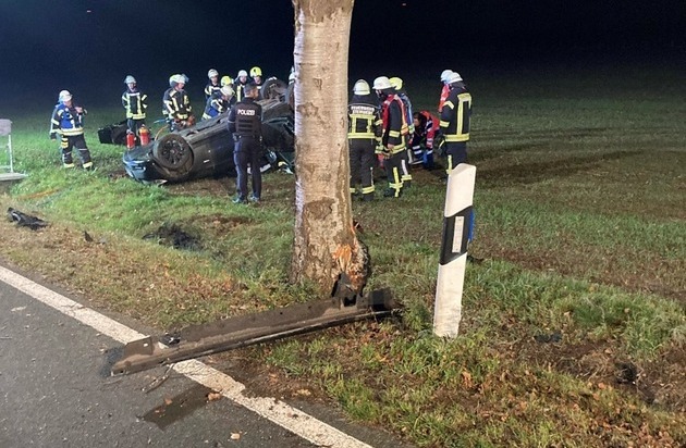 (FW) In Folge eines schweren Alleinunfalls am Mittwochabend in Stemwede überschlug sich ein Mann mit seinem Pkw. Da seine Verletzungen zunächst als lebensbedrohlich eingeschätzt wurden, alarmierte man ein Verkehrsunfallteam.