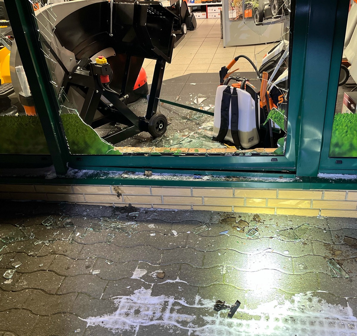 (TB) Mehrere Männer drangen in der Nacht zu Montag in einen Betrieb für Land- und Gartentechnik in Kleinendorf ein. Hierbei erbeuteten sie Gartengeräte.