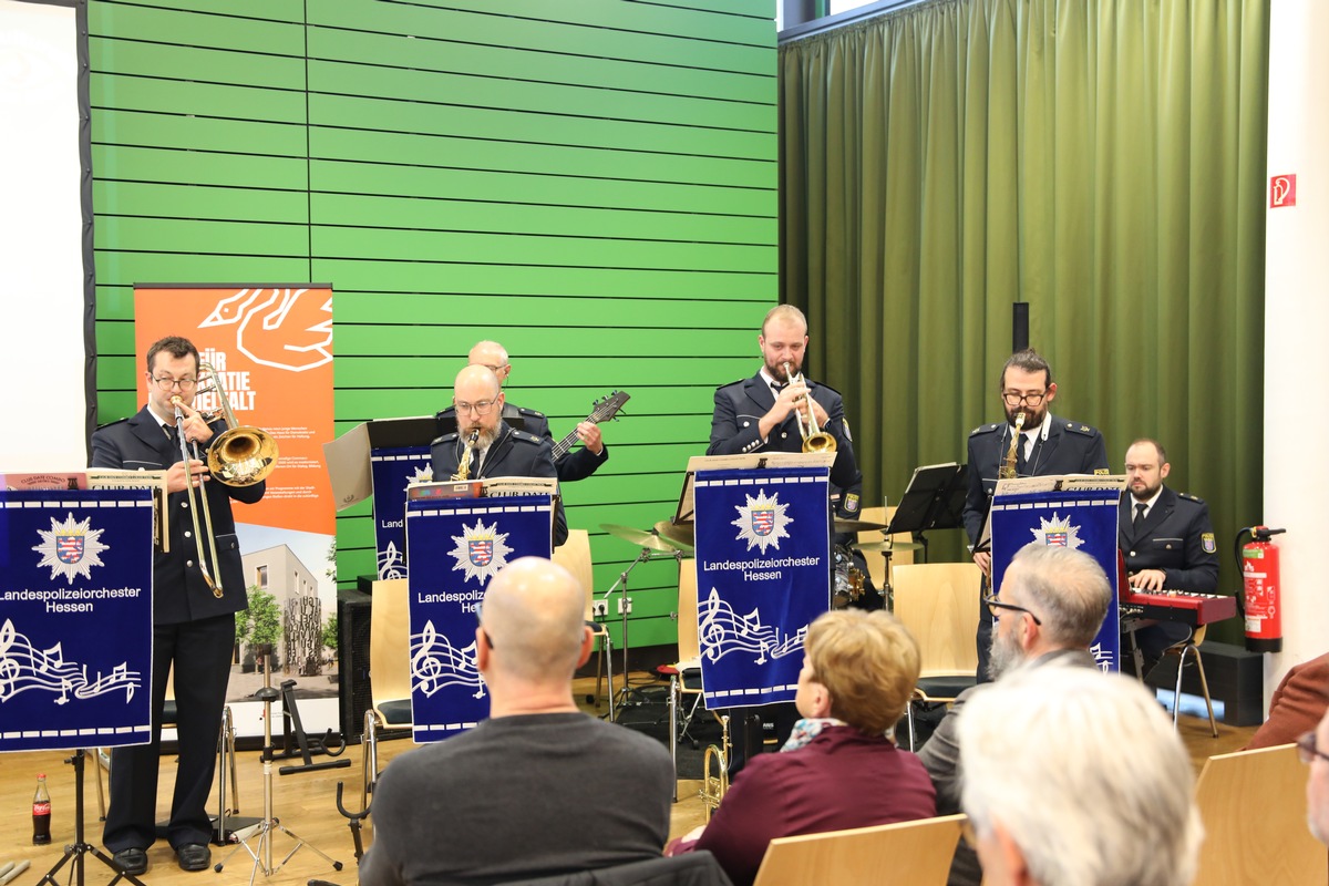 (cl) Im Rahmen der Interkulturellen Woche 2025 besuchte Staatssekretär Martin Rößler heute den interkulturellen Abend des Polizeipräsidiums Südosthessen und der Stadt Hanau. Unter dem Motto "#dafür - Gemeinsam Sicher in Hessen" kamen mehr als 100 Gäste aus Politik, Ausländerbeiräten, Zivilgesellschaft, Religionsgemeinschaften, Vereinen und Migrantenselbstorganisationen im Bürgerhaus Hanau-Wolfgang zusammen, um ein starkes Zeichen für Dialog, Vielfalt und gesellschaftlichen Zusammenhalt zu setzen. Musikalisch begleitet wurde der Abend vom Landespolizeiorchester Hessen.