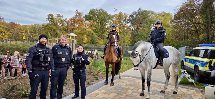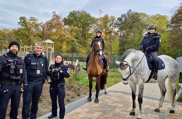 (lei) Meldungen aus der jüngeren Vergangenheit über illegal entsorgte Abfälle oder Gefahrstoffe in der Bulau waren Anlass für einen Einsatz der Polizeireiterstaffel am Freitag am Stadtrand. Mehrere Stunden lang waren die Beamtinnen der zum Hessischen Polizeipräsidium Einsatz gehörenden Dienststelle vom Vor- bis in den Nachmittag hinein hoch zu Ross in dem Waldstück zwischen dem Hanauer Stadtteil Wolfgang und Erlensee unterwegs, um nach dem Rechten zu sehen, aber auch um Präsenz zu zeigen. Unerlaubt weggeworfener Müll oder andere polizeiliche Feststellungen wurden nicht ausfindig gemacht, sodass die Polizistinnen am Ende der Präventivstreife zu ihrem Startpunkt an einem Kindergarten im Pioneer-Park zurückkehrten. Dort wurden sie bereits bei ihrer Ankunft am Morgen durch die Kids mit staunenden Augen am Zaun empfangen. Die Stadtpolizei Hanau hatte zuvor für eine barrierefreie Zufahrt gesorgt.
