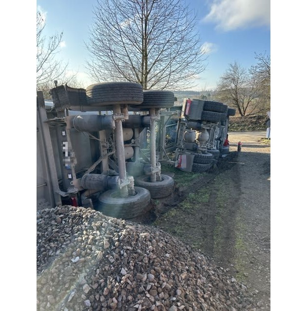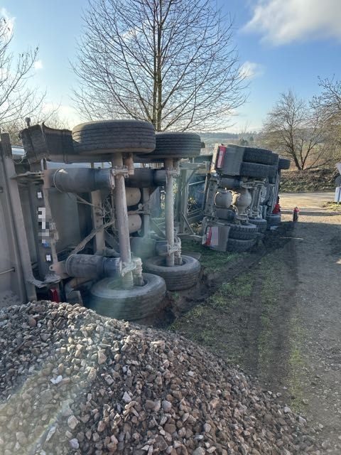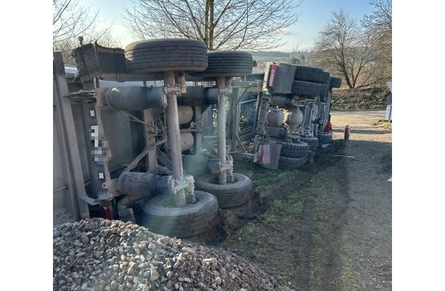 POL-OF: Sattelzug kippte bei Entladen von Schotter um