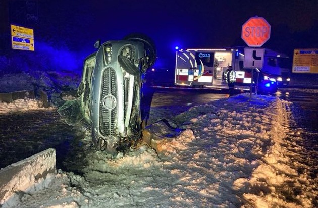 In der Nacht zu Dienstag kam ein 44-jähriger Mercedes-Fahrer gegen 2.20 Uhr auf der Landesstraße 3117 bei Rodgau in einer Kurve an der Abzweigung zur Udenhoutstraße von der Fahrbahn ab und stürzte mit seiner C-Klasse auf die Seite. Der Mann stand unter Alkoholeinfluss; ein Atemalkoholtest ergab 1,84 Promille. Eine Blutentnahme wurde angeordnet.