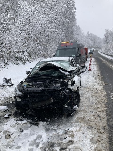Gegen Mittag verlor vermutlich aufgrund nicht angepasster Geschwindigkeit eine Autofahrerin auf der Bundesstraße 276 zwischen Brachttal und Wächtersbach die Kontrolle über ihren Hyundai, geriet ins Schleudern und prallte mit einem Transporter zusammen. Die Frau zog sich blutige Kopfverletzungen zu und kam in eine Klinik. Beide Fahrzeuge mussten abgeschleppt werden, die Straße war für mehr als zwei Stunden voll gesperrt.