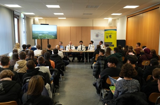 (pl)Am Montag, den 10. November, fand in der Erich-Kästner-Schule in Wiesbaden-Schierstein eine Veranstaltung der Dialogreihe "Cops im Dialog - Polizei und Schule im Austausch" statt. Dieses Format ist Teil des "Respekt-Pakets" der Hessischen Landesregierung und zielt darauf ab, das gegenseitige Verständnis zwischen Jugendlichen und Einsatzkräften zu fördern sowie für ein respektvolles Miteinander zu sensibilisieren. Hier setzt die Polizei mit Transparenz und direktem Dialog an, um der jüngeren Generation ihre tägliche Arbeit und die damit verbundenen Herausforderungen näherzubringen.
