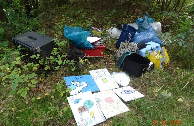 Vor Ort stellten sie diversen Hausrat, Lebensmittelabfälle, Sperrgut und einen halbvollen Kanister Motoröl fest. Darunter befanden sich auch mehrere selbst gemalte, mit Vornamen versehene Bilder, so dass die Ermittler hier auf Zeugenhinweise setzen. Der Tatzeitraum ist bislang nicht näher eingrenzbar.