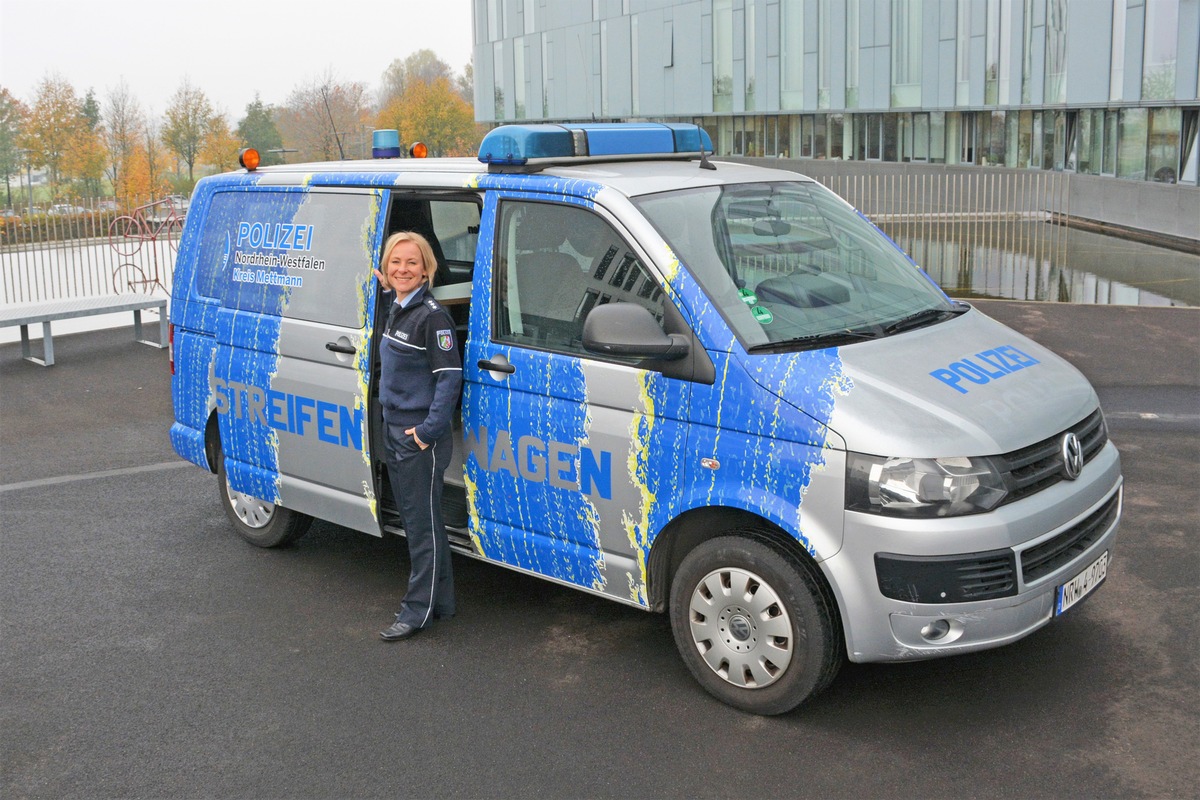 Er tourt schon seit geraumer Zeit durch den Kreis Mettmann und ist ein echter Hingucker: Der STREIFEN-Wagen der Kreispolizeibehörde Mettmann ist ein auffällig lackiertes Polizeifahrzeug, welches insbesondere von den Bezirksdiensten, aber auch von den Expertinnen und Experten des Kriminalkommissariats Kriminalprävention / Opferschutz genutzt wird, um mit den Bürgerinnen und Bürgern ins Gespräch zu kommen.