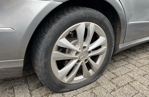 SteppjackeAuf und rund um den Parkplatz stellten die Polizistinnen und Polizisten insgesamt acht Autos mit zerstochenen Reifen fest. Der entstandene Sachschaden dürfte sich auf eine vierstellige Summe belaufen.
