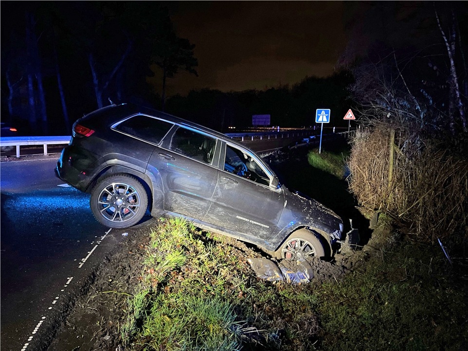Gegen 20:40 Uhr war der Monheimer mit seinem Jeep Grand Cherokee von der Bergischen Landstraße aus auf die A 542 gefahren. Nach dem derzeitigen Stand der Ermittlungen verlor er dabei mit überhöhter Geschwindigkeit die Kontrolle über sein Auto, welches von der Straße in einen Graben geschleudert wurde.