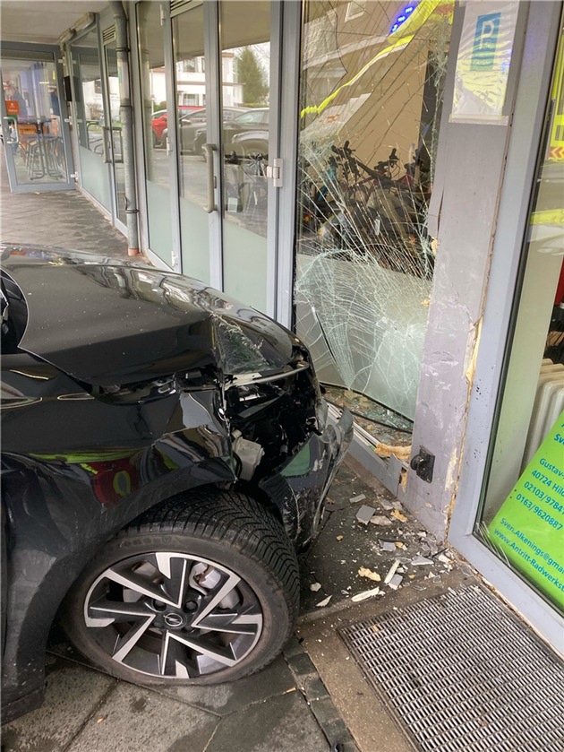In Hilden hat am Donnerstag (12. Februar 2026) eine 68 Jahre alte Frau beim Einparken die Kontrolle über ihr Auto verloren. Ihr Wagen stieß dabei mit hoher Wucht in die Schaufensterfront eines Fahrradgeschäfts. Glücklicherweise wurde niemand verletzt - es entstand jedoch ein relativ hoher Sachschaden.