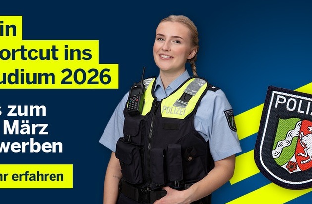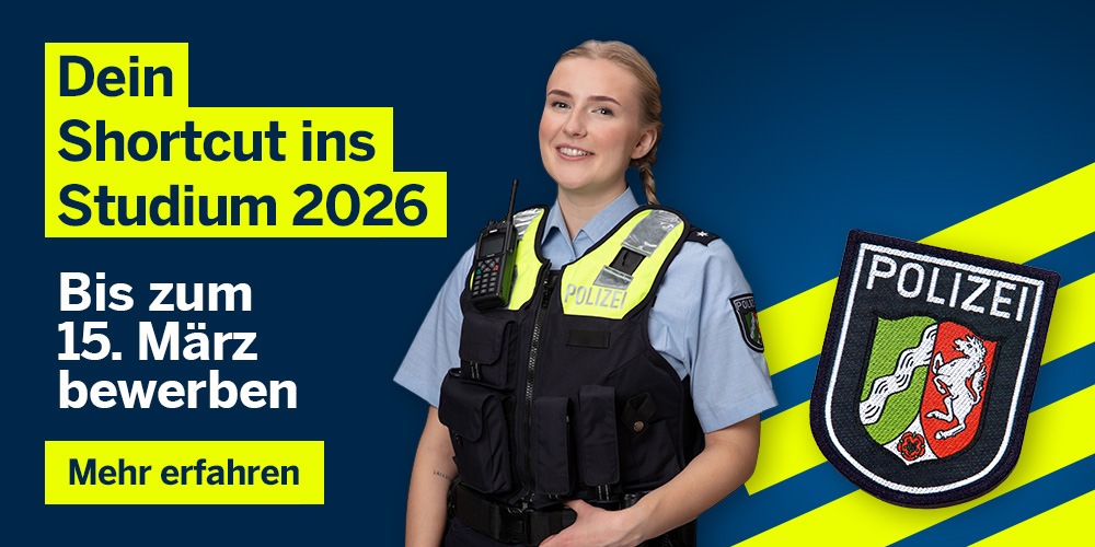 Dann sind Sie bei der Polizei in Nordrhein-Westfalen genau an der richtigen Adresse! Und das Allerbeste: Obwohl die Bewerbungsfrist für den Studienstart zum 1. September 2026 bereits rum ist, eröffnet sich nun außerplanmäßig doch noch einmal die Möglichkeit, einen der begehrten Studienplätze für 2026 zu ergattern. Möglich macht dies die Initiative "Jetzt statt gleich!" der Polizei NRW - und so funktioniert es: