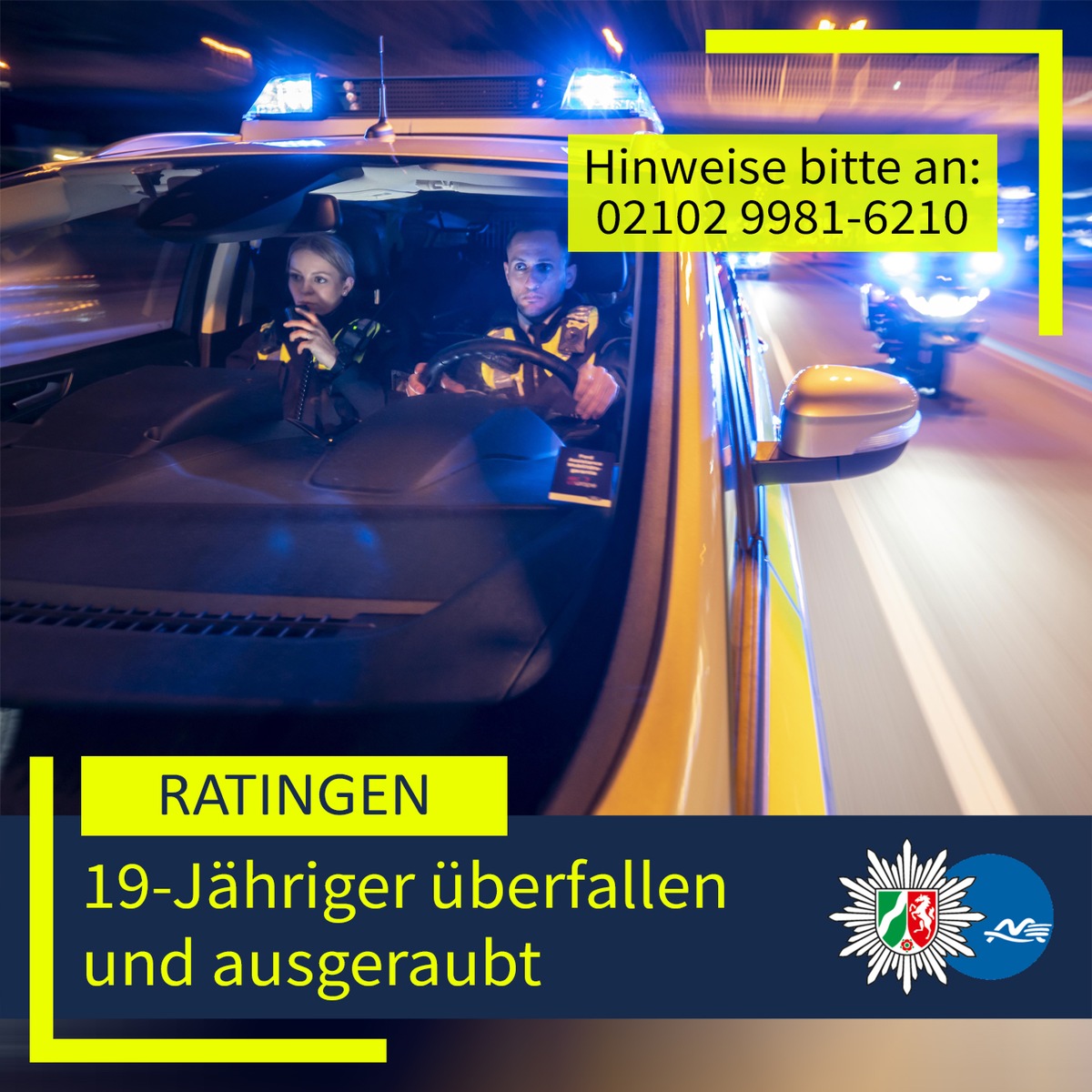 Die Täter nahmen dem jungen Mann seine Geldbörse, Handy und Umhängetasche ab und schlugen ihm mehrfach ins Gesicht. Dem Ratinger gelang anschließend die Flucht. Er rannte nach Hause und alarmierte die Polizei, die jedoch im Rahmen einer sofort eingeleiteten Fahndung leider keine verdächtigen Personen mehr antreffen konnte. Über die Handyortung konnten die Kräfte jedoch das Smartphone des jungen Mannes auf einem Gehweg in der Nähe auffinden.