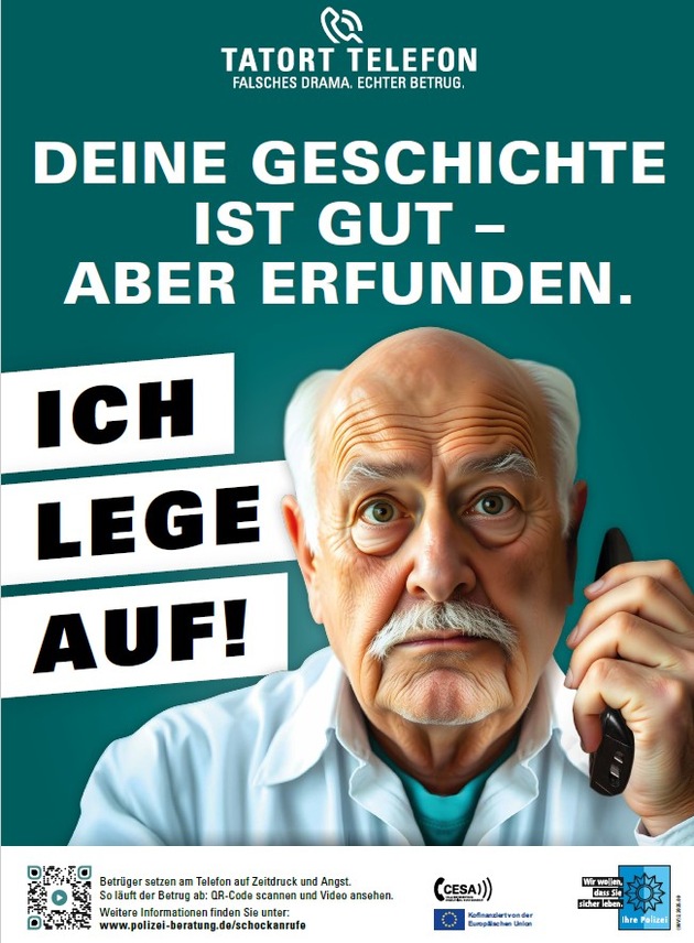 Seien Sie skeptisch, wenn Sie Anrufe oder Nachrichten von unbekannten Nummern erhalten, in denen Sie nach Bankdaten, Geld oder Schmuck gefragt werden. Legen Sie einfach auf und machen Sie keine Angaben zu Ihren persönlichen Daten oder Ihrem Vermögen! Geben Sie unter keinen Umständen Ihre Bankdaten oder auch Ihre Girocard an Dritte heraus. Rufen Sie die echte Polizei in einem eigenständigen Telefonat von Ihrem Festnetztelefon unter der 110 an!