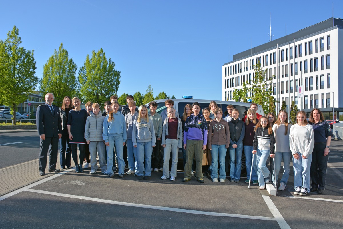 Am Morgen begrüßte sie dazu Landrätin Dr. Bettina Warnecke in ihrer Funktion als Leiterin der Kreispolizeibehörde Mettmann gemeinsam mit dem Abteilungsleiter Polizei Holger Schepanski im Haupthaus der Polizei am Adalbert-Bach-Platz. Gemeinsam machten sie den polizeiinteressierten Jugendlichen deutlich, wie dringend guter Nachwuchs auch bei der Polizei benötigt wird und ermunterten sie, sich später auch bei der Polizei zu bewerben.