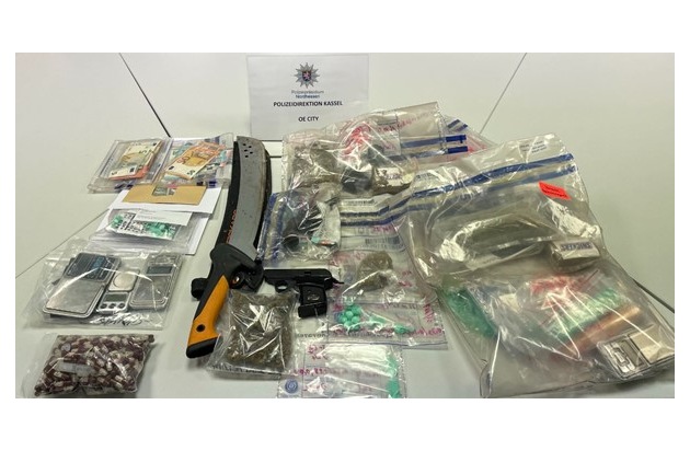 Ein weiteres Mal ist den Ermittlern der OE City der Kasseler Polizei mit Unterstützung durch Beamte der Direktion Bereitschaftspolizei Nord am Donnerstag ein Schlag gegen die Drogenkriminalität in der Kasseler Innenstadt gelungen. Gleich fünfmal durchsuchten die Polizisten gemeinsam mit einem Diensthundführer die Wohnungen von mutmaßlichen Dealern und stellten dabei Betäubungsmittel mit einem Straßenwert von mehreren tausend Euro, Waffen und Bargeld sicher. Außerdem trafen sie in einer der durchsuchten Wohnungen auf einen Mann, gegen den gleich vier Haftbefehle bestanden und der zur Verbüßung einer längeren Freiheitsstrafe direkt in eine Justizvollzugsanstalt verbracht wurde.