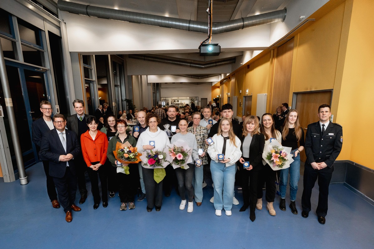 Bereits zum 26. Mal haben das Polizeipräsidium Nordhessen und der Verein Bürger und Polizei in Kassel am gestrigen Dienstagabend öffentlich Menschen ausgezeichnet, die im vergangenen Jahr die Arbeit der nordhessischen Polizei in vorbildlicher Weise unterstützt und durch ihre couragierten Taten dazu beigetragen haben, Straftaten zu verhindern, sie aufzuklären oder Tatverdächtige dingfest zu machen. Insgesamt 12 Bürgerinnen und Bürger aus Nordhessen, drei aus dem Landkreis Höxter und ein Mann aus dem Landkreis Holzminden wurden vom Präsidium des Vereins für die Auszeichnung mit der "Kasseler Polizeimedaille" ausgewählt. Zwei von ihnen waren leider verhindert, weshalb ihre Ehrungen nachgeholt werden.