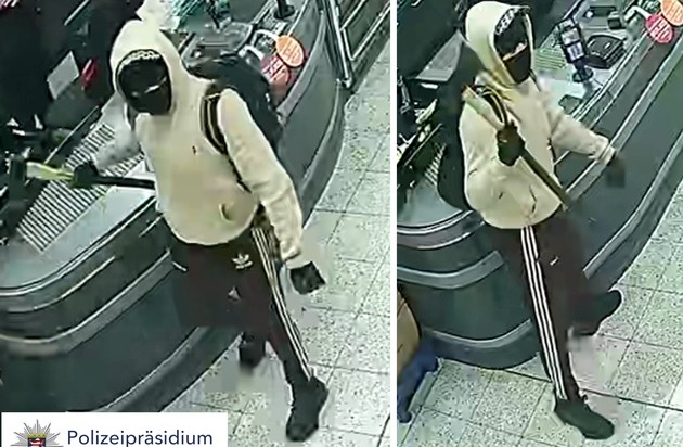 Der Raubüberfall hatte sich am Dienstag, 21. Oktober 2025, gegen 6:25 Uhr ereignet. Der bislang unbekannte Täter war mit einer Axt in der Hand in das Geschäft gekommen, direkt auf die Kassiererin zugegangen und hatte von ihr die Herausgabe des Geldes aus der Kasse gefordert. Nachdem die verängstigte Mitarbeiterin der Aufforderung nachgekommen war und das Geld ausgehändigt hatte, flüchtete der Räuber nach draußen, wo sich seine Spur verliert. Die Kassiererin blieb körperlich unverletzt, erlitt aber einen Schock.