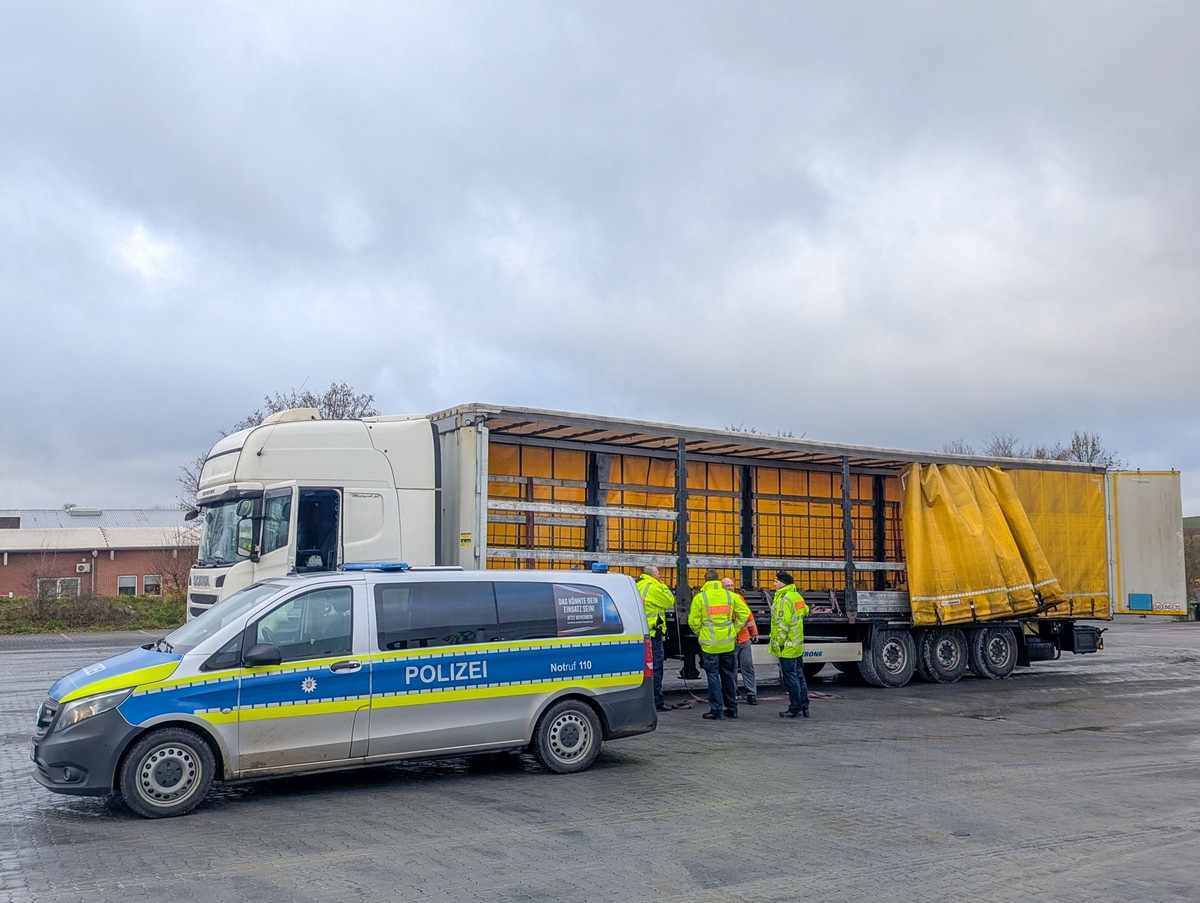 Neun Lastwagenfahrern wurde die Weiterfahrt untersagt, da durch verschiedene Verstöße die Verkehrssicherheit erheblich gefährdet war. Die meisten konnten die Mängel kurzfristig erledigen, indem sie beispielsweise die Ladungssicherung korrigierten. In einem Fall musste ein Ersatzfahrzeug besorgt werden, um die Fahrt fortsetzten zu können.