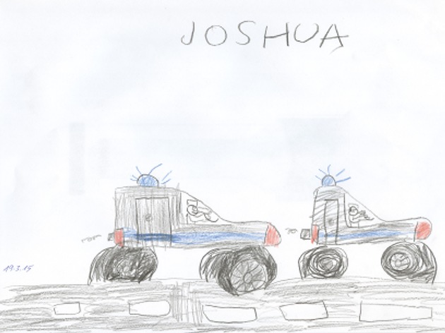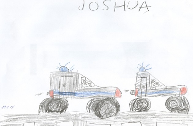 Unmittelbar am Morgen hatten sich die Mädchen und Jungen deshalb in ihrer Gruppe Gedanken darüber gemacht, wie denn die neuen Fahrzeuge aussehen und was diese so alles können sollten. Die Beamten des 1. Polizeirevieres nahmen die mit viel Erfindergeist, Hingabe und großem künstlerischen Geschick gemalten Bilder herzlich gerne entgegen und freuten sich sehr darüber, dass die Kinder ihnen auf diese schnelle und unkonventionelle Art und Weise ihre Hilfe zuteilwerden ließen.