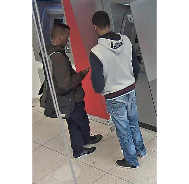 Von der Überwachungskamera einer der Rüsselsheimer Banken konnten die beigefügten Aufnahmen gefertigt werden. Sie zeigen die beiden Tatverdächtigen bei dem Versuch der Geldabhebung.