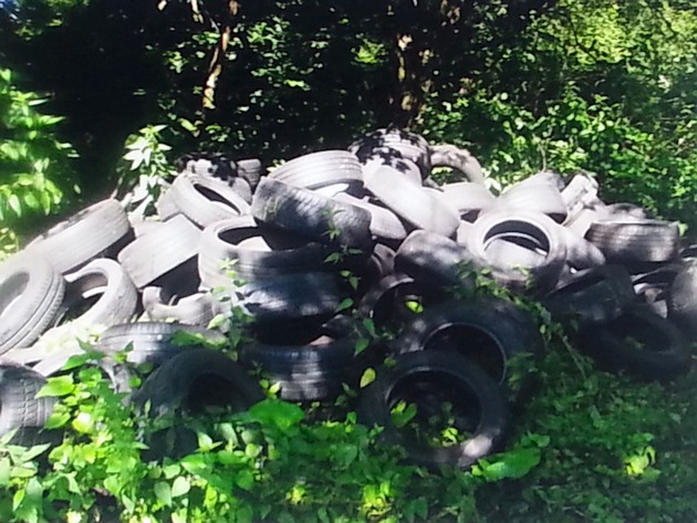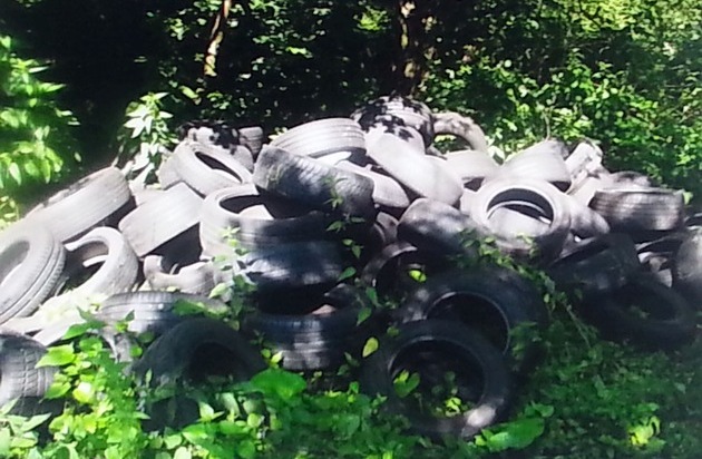 (re) In der Zeit von Samstag, 25.06.2016, 20.00 Uhr, bis Sonntag, 26.06.2016, 08.00 Uhr wurden in einem Gebüsch im Bereich der Marie-Curie-Straße etwa 50 Autoreifen illegal entsorgt.