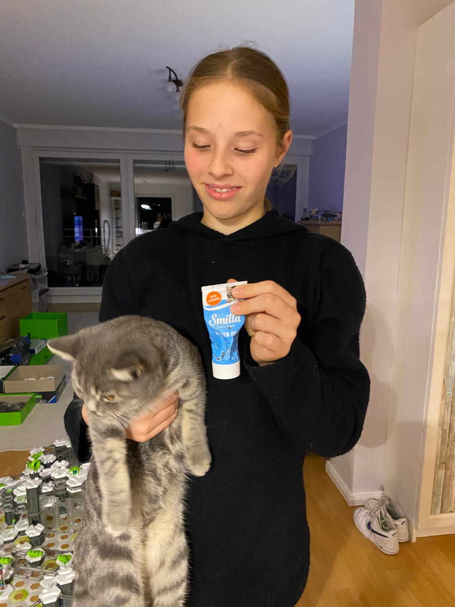 - ca. 162cm groß, hat blonde Haare und ist mutmaßlich mit einer schwarzen Wellensteyn-Jacke, einer blauen Jeanshose und weißen Nike-Schuhen mit hellblauen Applikationen bekleidet und trägt eine Zahnspange