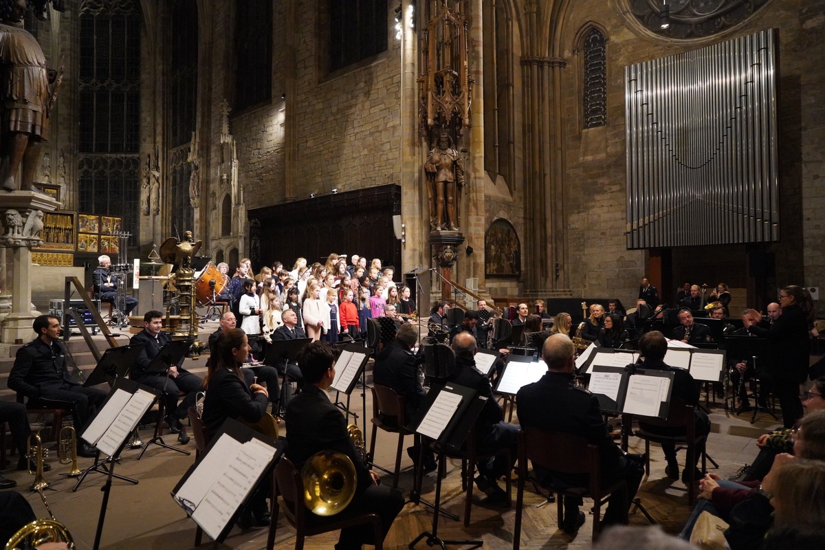 Als um 19 Uhr die ersten Töne von "Adeste Fideles" erklangen, war die Kirche bis auf den letzten Platz gefüllt. Neben den Kirchenbänken und zusätzlichen Stuhlreihen standen die Leute und lauschten den Klängen der Musik. Über 900 Besucherinnen und Besucher kamen zum diesjährigen Benefizkonzert - Ein neuer Rekord.
