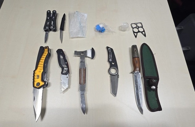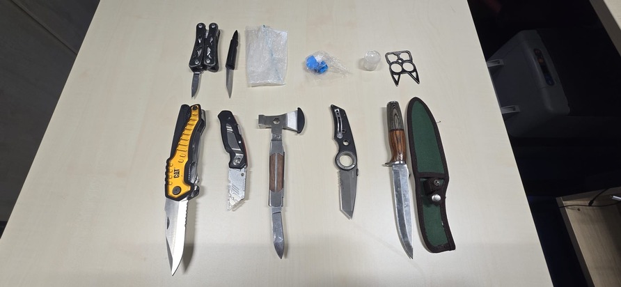Die Beamten beschlagnahmten alle gefährlichen Gegenstände sowie die Betäubungsmittel.