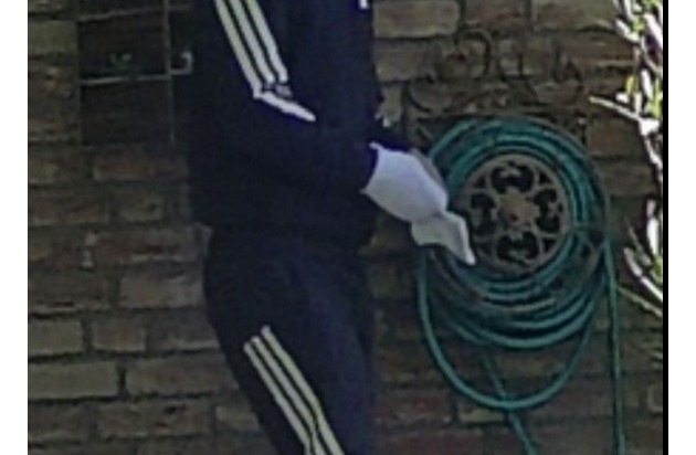 Nach bisherigem Kenntnisstand soll die abgebildete Person zunächst auf der Gebäuderückseite versucht haben, die Terrassentür und ein danebenliegendes Fenster aufzuhebeln. Als die Alarmanlage des Hauses auslöste, flüchtete die Person in Richtung Friedhof. Auf dem dortigen Parkplatz sei der Einbrecher in ein unbekanntes Auto zu einem Mittäter zugestiegen. Das Auto entfernte sich daraufhin mit beiden Insassen in unbekannte Richtung.