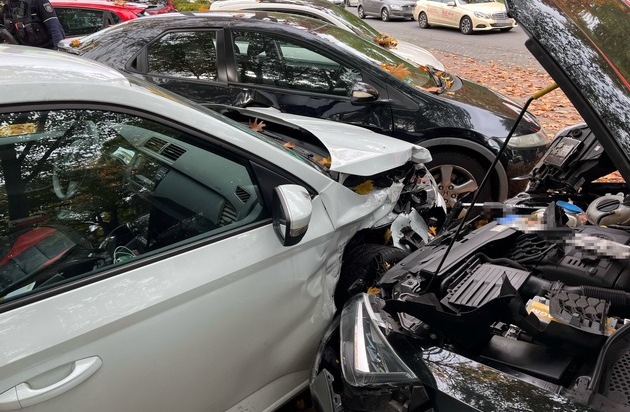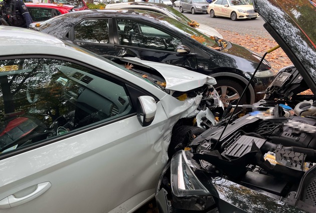 Der Seat und ein weiteres Fahrzeug waren nicht mehr fahrbereit und mussten abgeschleppt werden. An allen beteiligten Autos entstand Sachschaden. Das Verkehrskommissariat 21 hat die Ermittlungen aufgenommen.