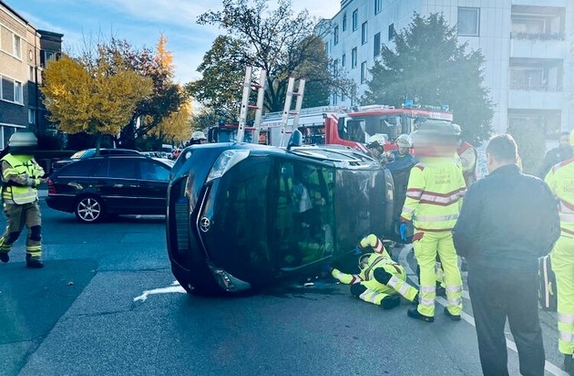 POL-DU: Wanheimerort: Unfall im Kreuzungsbereich - Auto kippt auf die Seite