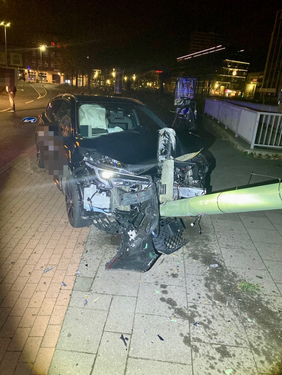 Ein 49-Jähriger ist in der Nacht zum Freitag (14. November, 2:20 Uhr) mit seinem schwarzen Toyota Corolla auf der Saarstraße von der Fahrbahn abgekommen und gegen ein Verkehrsschild und einen Laternenmast geprallt.