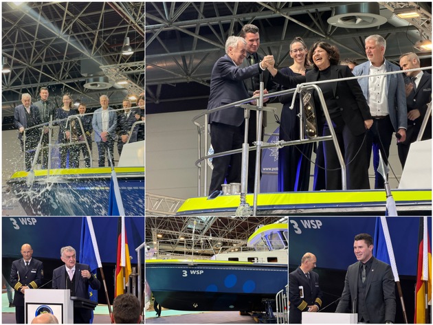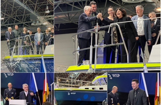 Am Mittwochmittag (21. Januar) wurde die "WSP 3" feierlich auf der Messe "boot" in Düsseldorf getauft. Die Patenschaft übernahm die Vizepräsidentin des Landtags NRW, Berivan Aymaz. Um exakt 14:37 Uhr zerschellte die Sektflasche am Bug des Bootes. Den traditionellen Segen spendete die Schifferseelsorgerin Ariane Stedtfeld.
