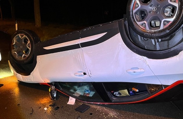 Als die Beamten eintrafen, entdeckten sie einen weißen Opel Mokka, der auf dem Dach lag sowie ein geparktes Audi TT Cabrio eines 65-Jährigen, mit dem der Opel zuvor kollidiert war. Von den Insassen des Verursacherfahrzeugs fehlte jede Spur.