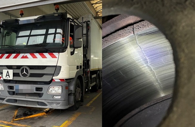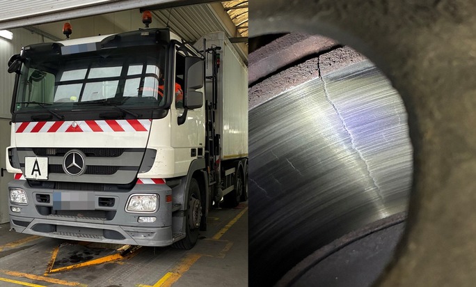 Auf gravierende Fahrzeugmängel sind Polizeibeamte am Dienstag, 2. Dezember 2025, in Schalke-Nord bei der Kontrolle eines Lkw mit Ladekran gestoßen. Die Polizisten hatten das Fahrzeug, mit welchem Altglas abtransportiert wird, gegen 14 Uhr an der Alfred-Zingler-Straße gestoppt und näher in Augenschein genommen. Dabei stellte sich heraus, dass es an der vorderen, linken Bremsscheibe mehrere Risse und Brüche gab. Da hierdurch die Verkehrssicherheit des Fahrzeugs nicht mehr gegeben war, führte dies zur unmittelbaren Stilllegung des Gefährts. Dem Fahrer wurde die Weiterfahrt untersagt und das Fahrzeug selbstständig abgeschleppt. Ihn erwartet nun ein Ordnungswidrigkeitenverfahren.