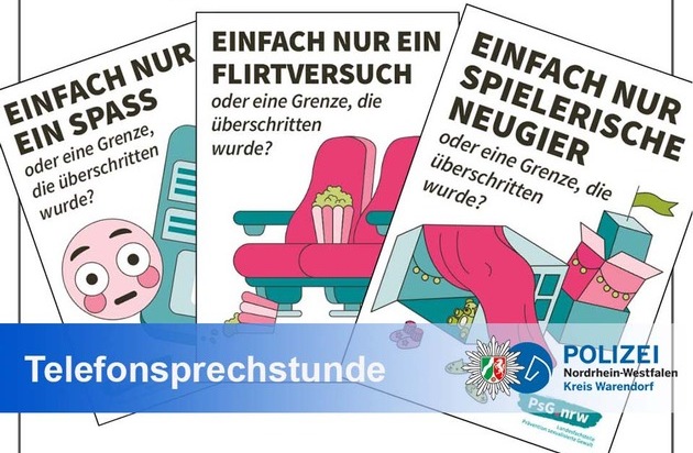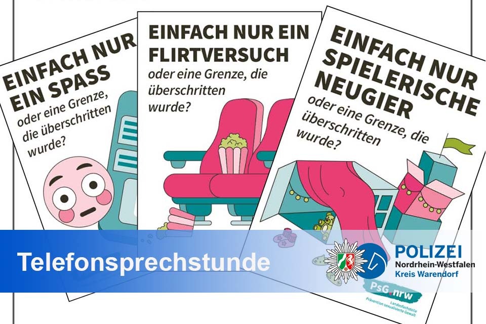 Die Kreispolizeibehörde Warendorf schaltet am Dienstag, den 18.11.2025, in der Zeit von 15.00 Uhr bis 18.00 Uhr eine Präventions-Hotline zum Thema sexualisierter Gewalt. Denn Wissen schützt!