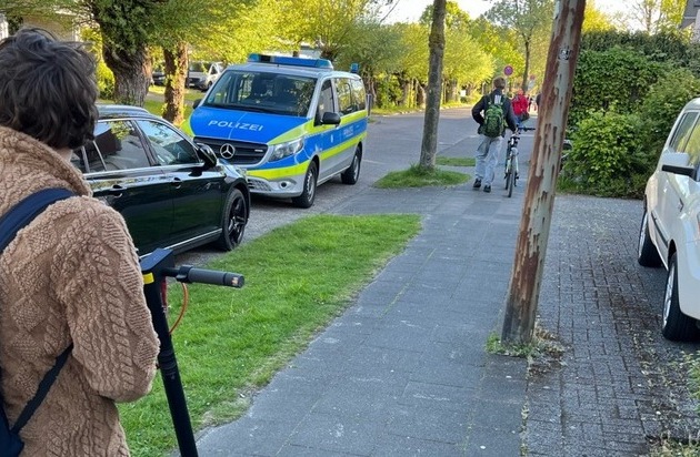 Nachmittags war ein E-Scooter-Fahrer auf dem Gehweg des Löffelmannweges in falscher Richtung unterwegs. Die Polizeibeamten beabsichtigten das Fahrzeug, welches zudem kein Pflichtversicherungskennzeichen trug, anzuhalten. Beim Erkennen der Polizeibeamten stoppte der Fahrer, sprang ab, verschwand im Parkgelände und ließ das Fahrzeug zurück. Die Nacheile blieb erfolglos. Der sichergestellte Scooter aus chinesischer Produktion, ist in Deutschland nicht zugelassen und darf nicht benutzt werden.