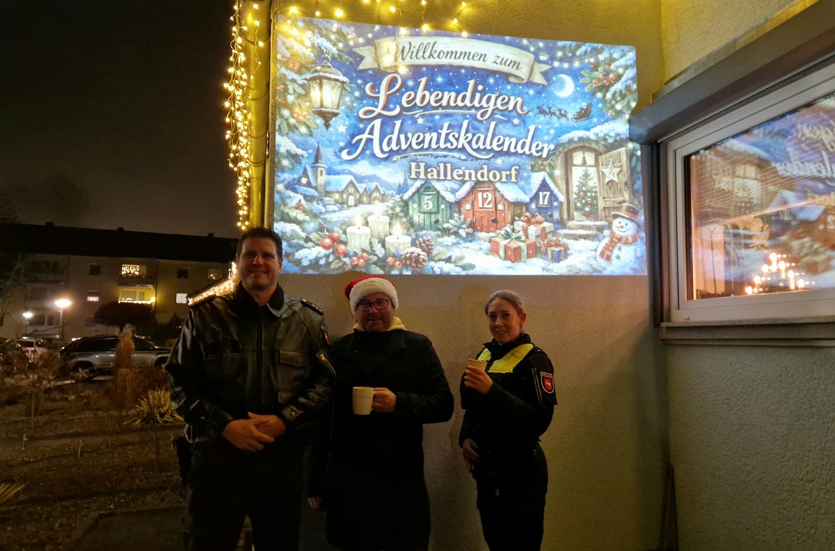Am 21.12.2025 war die Leitung der Polizeistation Salzgitter-Thiede in Salzgitter-Hallendorf zu Besuch und nahm dort am "Lebendigen Adventskalender" teil.
