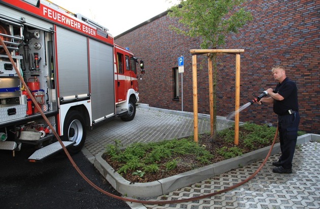 Der eine oder andere aufmerksame Essener wird sich vielleicht verdutzt die Augen reiben und zunächst nicht glauben wollen, was er da sieht. Keine Angst, es handelt sich um keine Fata Morgana oder um versteckte Bodenfeuer. Alle sechzehn Einheiten der Essener Freiwilligen Feuerwehr sind von heute Abend (21.06.2017) bis Sonntag einschließlich in den Stadtteilen unterwegs, um frisch angepflanzte Jungbäume mit dringend benötigtem Wasser zu versorgen. Grün und Gruga hat um Unterstützung gebeten, zu groß ist die Anzahl der frisch gesetzten Bäumchen. In den letzten Monaten ist wahrlich nicht viel Regen gefallen. Die Wetterprognose für die nächsten Tage lässt auch weiterhin nicht viel Niederschlag erwarten. Die hohen Temperaturen machen die Aktion letztlich erforderlich, um den jungen Bäumchen das Überleben zu sichern. Rolf Brochhagen-Hecke, Sprecher der Essener Freiwilligen Feuerwehren, der die einmalige Aktion organisiert, brachte es mit knappen Worten auf den Punkt: "Noch immer lässt uns der Pfingststurm 'Ela' nicht los. Erst hat er massenhaft Bäume umgeschmissen. Die Freiwilligen Feuerwehren und viele andere Helfer waren wochenlang mit Aufräumen beschäftigt. Jetzt müssen die Ersatzpflanzungen an den Straßen mit Wasser versorgt werden, damit sie nicht eingehen. Die ersten Bäumchen werfen bereits Laub ab". Pfingstmontag 2014 war das Sturmtief über Essen hinweg gezogen und hatte für chaotische Zustände gesorgt, Tausende Bäume an den Straßen, in Parks und Wäldern fielen 'Ela' zum Opfer. Aber nicht nur die Freiwillige Feuerwehr ist aufgerufen, Straßenbäume zu bewässern. Jeder Essener, dem etwas an unserer Grünen Hauptstadt liegt, darf gerne den durstigen Gesellen vor seiner Tür bewässern. Ideal sind 50 - 100 Liter täglich, zumindest so lange es so heiß ist. "Wasser marsch-für alle". Danke für Ihre Unterstützung. (MF)