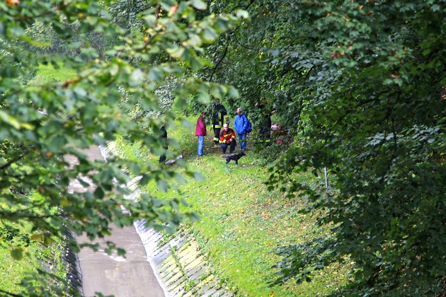 Aufmerksamen Radfahren hat ein kleiner schwarzer Mischlingshund vermutlich sein Leben zu verdanken. Das ältere Ehepaar war heute Nachmittag (09.10.2017) mit dem Rad an der Berne unterwegs und bemerkte den Pechvogel, der verzweifelt und vergebens versuchte, aus der betonierten und glitschigen Rinne der Berne ans Ufer zu kommen. Die zu Hilfe gerufenen Feuerwehrmänner legten eine Steckleiter an die Böschung, stiegen hinunter und griffen beherzt zu. Den zitternden, vollkommen durchnässten (und nicht gut riechenden) Hund brachten die Retter mit dem Löschfahrzeug zum Tierheim. Er trägt kein Halsband, ein Auge scheint verletzt. (MF)