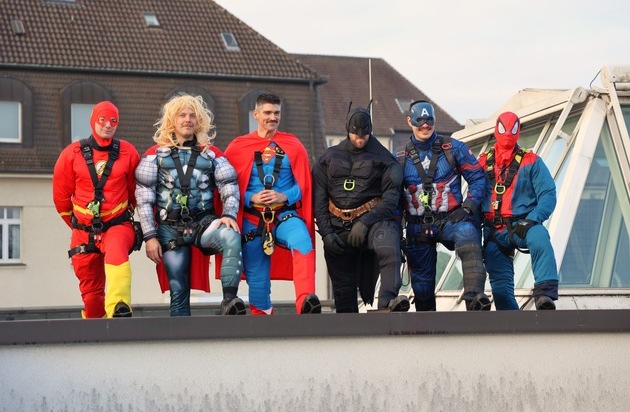 FW-E: Superhelden-Aktion der Höhenrettung - Feuerwehr Essen überrascht kleine Patientinnen und Patienten