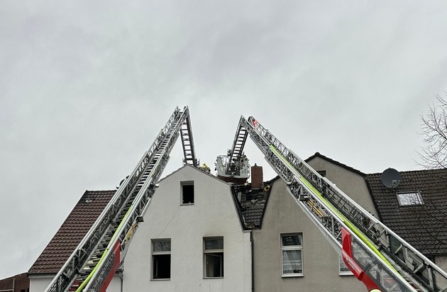 Eine besondere Herausforderung stellte die Rauchausbreitung dar. Das Feuer entwickelte sich über den Treppenraum bis in den Dachbereich. Dort entzündeten sich Teile der Dachkonstruktion, unter anderem Dachsparren. Während der Kontrolle des Dachbereiches kam es zu einer plötzlichen Brandausbreitung in der Dachkonstruktion. Sofort wurde eine zweite Drehleiter nachgefordert und in Stellung gebracht. In der Folge öffneten die Einsatzkräfte große Teile des Daches, um an die Brandstellen zu gelangen. Zusätzlich setzte die Feuerwehr spezielle Löschbohrsysteme ein, um Glutnester in der Dachstruktur gezielt abzulöschen.