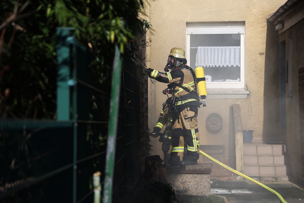 Bei Eintreffen der ersten Kräfte brannte die Gartenlaube bereits in voller Ausdehnung und hatte sich auf einen Anbau des Mehrfamilienhauses ausgebreitet. Im angrenzenden Wohngebäude war bereits eine deutliche Rauchentwicklung festzustellen und mehrere Rauchwarnmelder wurden ausgelöst.