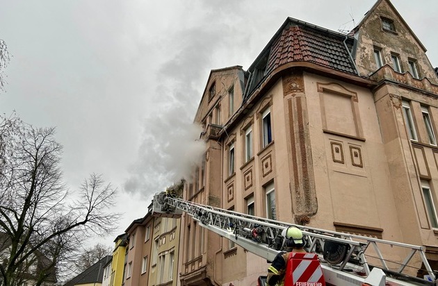 FW-E: Wohnungsbrand in einem Mehrfamilienhaus - Mehrere Menschen und Tiere über Drehleitern gerettet