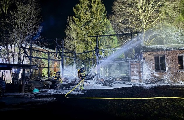 Die Feuerwehr leitete umgehend die Brandbekämpfung ein. Mehrere Trupps gingen unter Atemschutz mit Strahlrohren gegen das Feuer vor. Im weiteren Einsatzverlauf kam auch Schaummittel zum Einsatz, um Glutnester gezielt abzulöschen. Die Nachlöscharbeiten zogen sich über mehrere Stunden hin. Auch am Morgen war eine erneute Brandnachschau erforderlich, nachdem es nochmals zu einer leichten Rauchentwicklung gekommen war.