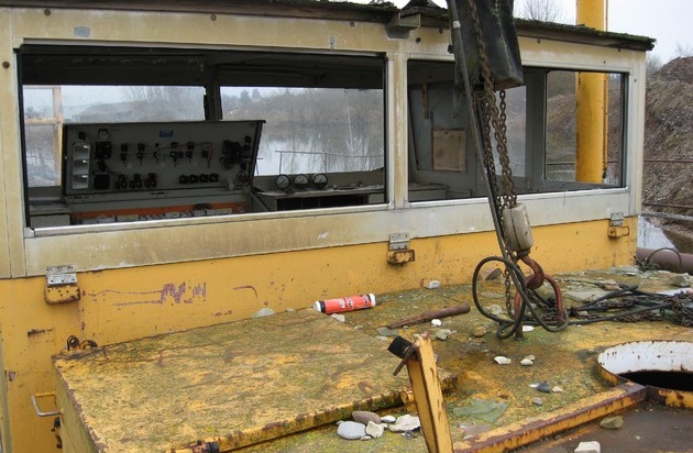 Im Zeitraum vom 15.01.2015 bis 19.01.2015 wurde in 31028 Gronau, Verlängerung Niedermarschweg, in der dortigen Kiesgrube durch Unbekannte der dort im Wasser schwimmende Saugbagger erheblich beschädigt. Es wurden u.a. die Scheiben des Führerstandes mit Steinen eingeworfen und teilweise ausgebaut. Weiterhin durchtrennten die Täter praktisch sämtliche Stromkabel bzw. Kabelverbindungen im Führerstand. Ein Betrieb dieses Saugbaggers ist somit für geraume Zeit nicht möglich, da die gesamte Elektrik neu verlegt werden muss. Die genaue Schadenshöhe konnte der Betreiber der Kiesgrube noch nicht angeben - nach vorsichtigen ersten Schätzungen ca.10.000,00 Euro. Zeugen, die im angegebenen Zeitraum Personen im genannten Bereich bemerkt haben, die gegebenenfalls mit diesen Sachbeschädigungen in Zusammenhang gebracht werden können, werden gebeten, sich mit der Polizei in Elze unter der Tel.-Nr.: 05068/93030 in Verbindung zu setzen.