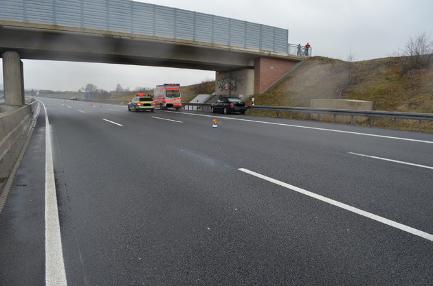 Die 35-jährige Fahrzeugführerin aus Jesterburg (Kreis Harburg), die mit ihrem Ehemann (36 Jahre) und den beiden Kindern (6 & 2 Jahre) auf dem Weg in den Wochenendurlaub war, geriet nach dem Zusammenprall ebenfalls ins Schleudern, drehte sich mehrfach mit ihrem Fahrzeug und prallte letztendlich, nach ca. 100m rückwärtsfahrend in die Außenschutzplanke. Dabei wurde eine größere Menge Schottersteine über alle Fahrtreifen verteilt.