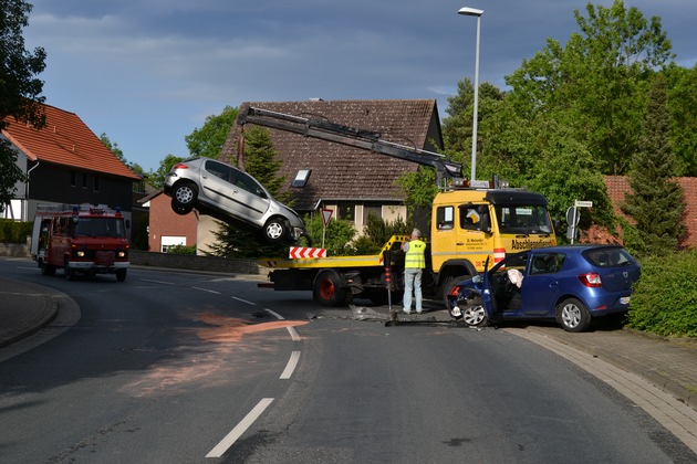 Bad Salzdetfurh/ Heinde (web) - Am Samstag (30.05.15), gegen 17:30 Uhr, kam es in der Ortsdruchfahrt Heinde - Hauptstraße - zu einem folgenschweren Verkehrsunfall. Zum Unfallzeitpunkt befuhr eine 26jährige aus der Gemeinde Giesen mit ihrem PKW Peugeot die Hauptstraße in Heinde aus Rtg. BAB 7 kommend in Rtg. Groß Düngen. Zeitgleich befuhr eine 35jährige aus der Gemeinde Schellerten mit ihrem Pkw Dacia die Hauptstraße aus Rtg. Gr. Düngen kommend in Rtg. BAB 7. Im Verlaufe einer scharfen Kurve (Höhe Mühlenweg) geriet die Giesenerin auf der leicht feuchten Fahrbahn mit ihrem Pkw in den Gegenverkehr und prallte dort mit dem Pkw der Schellerterin zusammen. Beide Fahrzeuge wurden durch den Zusammenprall schwer beschädigt und blockierten fortan die Ortsdurchfahrt. Weiterhin wurden die Giesenerin und die 4jährige Tochter der Schellerterin bei dem Verkehrsunfall verletzt. Beide wurden mit Rettungswagen in Hildesheimer Krankenhäuser gebracht. Die Verletzungen scheinen aber zumindest nicht schwerwiegend zu sein. Zur Unfallaufnahme und Bergung der Fahrzeuge war die Hauptstraße im Bereich der Unfallstelle für rund eine Stunde vollgesperrt. Der Verkehr wurde abgeleitet. Es kam nur zu geringen Verkehrsbehinderungen. Die beiden stark beschädigten Pkw wurden abgeschleppt - verm. jeweils wirtschaftl. Totalschaden -. Die Schadenssumme wird dabei auf mindestens 10.000 Euro geschätzt. Um augelaufende Betriebsstoffe zu binden und aufzunehmen kam auch die Freiwillige Feuerwehr Heinde zum Einsatz.