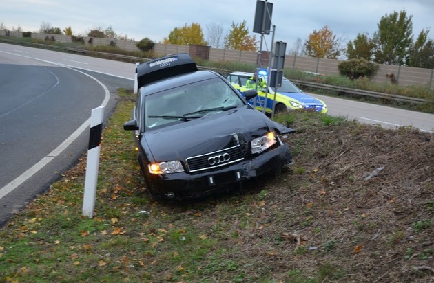 Am 30.10.2016 kam es gegen 15:45 Uhr auf der A 7 in Fahrtrichtung Kassel zu einem Verkehrsunfall mit einem Gesamtschaden im hohen 4-stelligen Bereich. Der leicht verletzte 28-jährige Fahrer war mit seiner leicht verletzten 23- jährigen Beifahrerin und einem 30-jährigen weiteren Insassen, alle aus dem Landkreis Diepholz stammend, auf der A7 aus Hannover in Richtung Hildesheim unterwegs. Auf der Höhe der Ausfahrt Hildesheim Drispenstedt kam der schwarze Audi A4 von der Fahrbahn ab, fuhr in eine Böschung, streifte mehrere Verkehrszeichen und einen Leipfosten und blieb auf dem Grünstreifen der Ausfahrt liegen. Da der Unfallhergang noch ungeklärt ist, sucht die Polizei Hildesheim Zeugen für das Unfallgeschehen und das Fahrverhalten des Fahrzeugführers im Vorfeld.