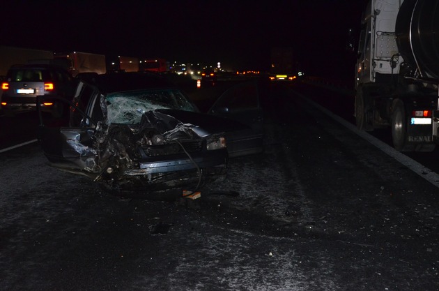 Am gestrigen Nachmittag gab es einen schweren Verkehrsunfall auf der A7 zwischen der Anschlussstelle Seesen und dem Parkplatz Schwalenberg in Fahrtrichtung Süden. Ein Gefahrgut- Sattelzug blieb gegen 15:45 Uhr aufgrund eines Elektronikausfalls auf dem Seitenstreifen liegen. Der 39-jährige Fahrer aus Baden-Württemberg sicherte den Sattelzug ab. Kurz nach 17:00 Uhr überfuhr aus bisher unbekannten Gründen ein 58-jähriger Fahrer aus Niedersachsen mit seinem Passat eine der aufgestellten Warnleuchten und prallte gegen den Sattelzug. Der Pkw wurde abgewiesen, schleuderte auf den mittleren Fahrsteifen und blieb dort liegen. Diese Situation erkannte ein 63-jähriger Sattelzugfahrer aus Hamburg zu spät und streifte den liegengebliebenen Pkw. Der Pkw Fahrer wurde bei diesem Unfall schwer verletzt und in ein Krankenhaus verbracht. Die beiden Lkw-Fahrer blieben unverletzt, der Sachschaden wurde auf eine niedrige fünfstellige geschätzt. Die A7 musste aufgrund des Zusammenstoßes von 17:15 Uhr bis 19:40 Uhr voll gesperrt werden. Während der Aufnahme kam es noch zu einem zweiten Ereignis. Im Stau geriet ein Mercedes aus unbekannten Gründen in Brand. Teilkräfte der Feuerwehr hielten auf der Nordfahrbahn an und löschten den Pkw. Deswegen musste auch die Nordfahrbahn für einige Minuten voll gesperrt werden. Die beiden Insassen des Pkw wurden nicht verletzt.